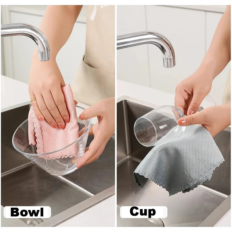 10/20pcs Microfiber Glass Cleaning Cloth Rag Lint-Free For Windows Car Kitchen Mirror No Trace Reusable Fish Scale Rag Polishing