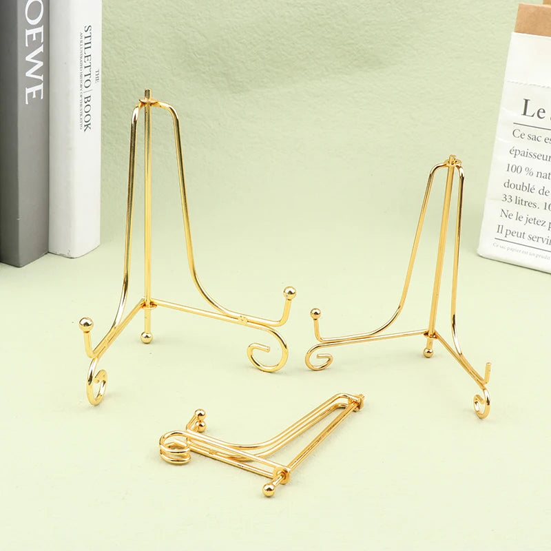 Gold Iron Display Stand Craft Bracket Book Holder Photo Pedestal Bowl Dish Frame Picture Plate Rack Easel Storage Decoration