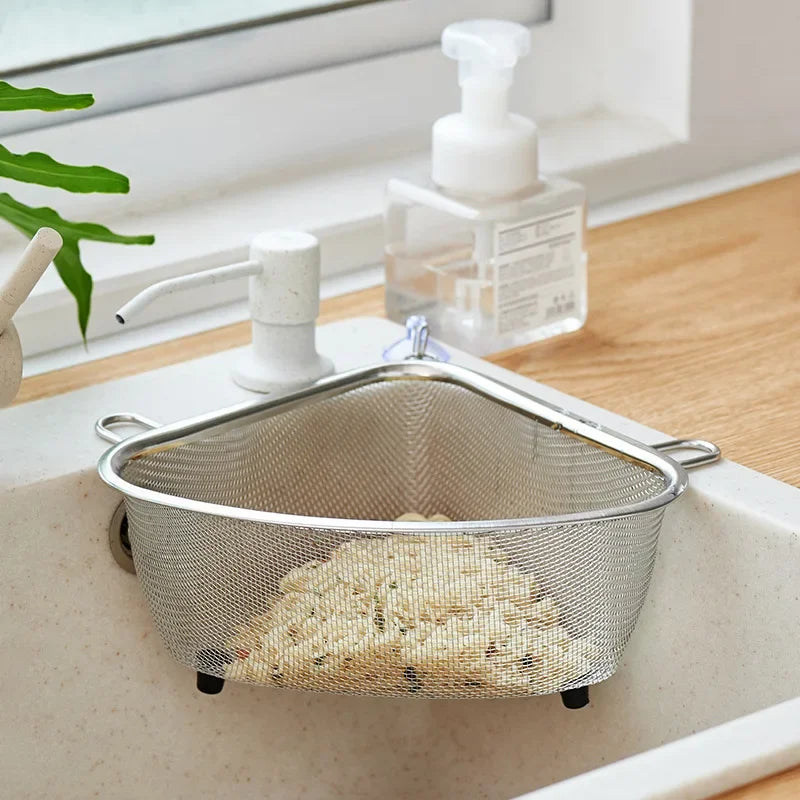 Kitchen Triangular Sink Strainer Drain Vegetable Fruit Drainer Basket Suction Cup Rack For Kitchen Storage Sink Filter Shelf