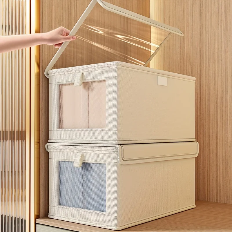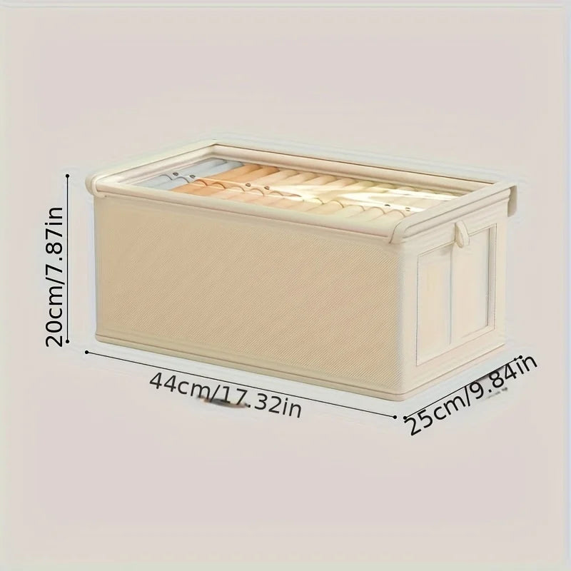 Large Foldable Canvas Storage Box with Clear Window - Organize and Store Clothing Space-Saving Home Closet Organizer