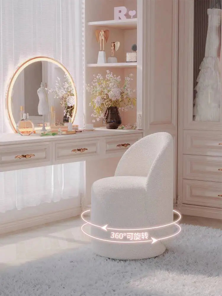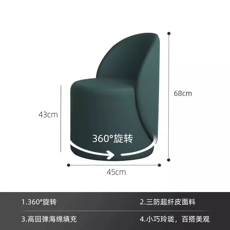 Shoe Changing Stool Dressing Chair Makeup Stool 360°Rotatable Sponge Backrest Comfortable Breathable Living Room Lazy Sofa Chair